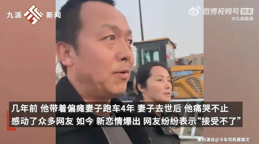 因为公布新恋情,货车司机聂建文和女友孟女士最近的压力很大。几年前,他带着偏瘫妻子跑车4年。妻子去世后,他痛哭不止,感动了众多网友。如今,新恋情爆出,部分网友表示“接受不了”。