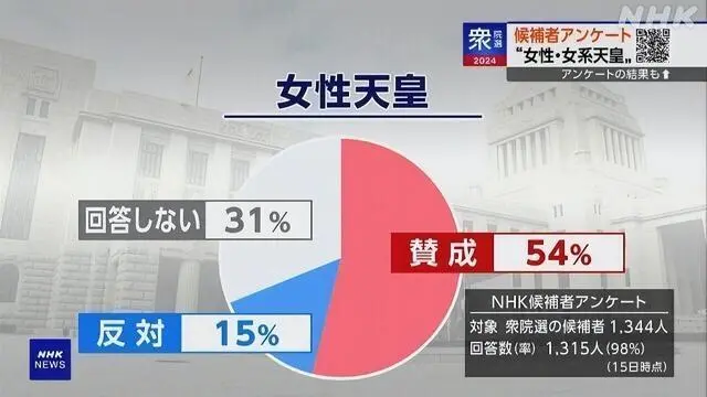 2024年10月的调查显示,超半数的国会议员候选人表示“能够接受女性天皇”。最近的一项民意调查更表明,90%的公众支持修改法律,允许女性登上王位。