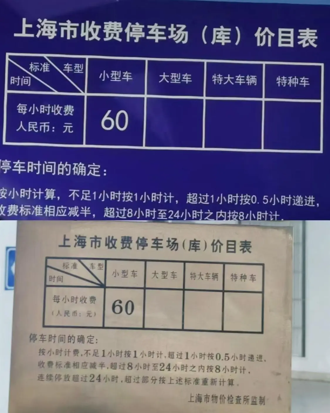 极目新闻记者查询发现,上海市半岛酒店停车场(库)价目表显示,每小时收费60元,不足1小时按1小时计,超过1小时按0.5小时递进,收费标准相应减半,超过8小时至24小时之内按8小时计。在半岛酒店停车场(库)内的收费明细公告上,有上海市物价检查所监制的标识。对此,上海市12345热线工作人员介绍,如果是酒店自己的停车场,他们是有自主定价权的。