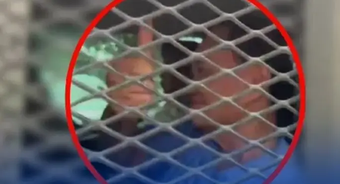 ▲他信入狱时,对着媒体镜头竖起大拇指