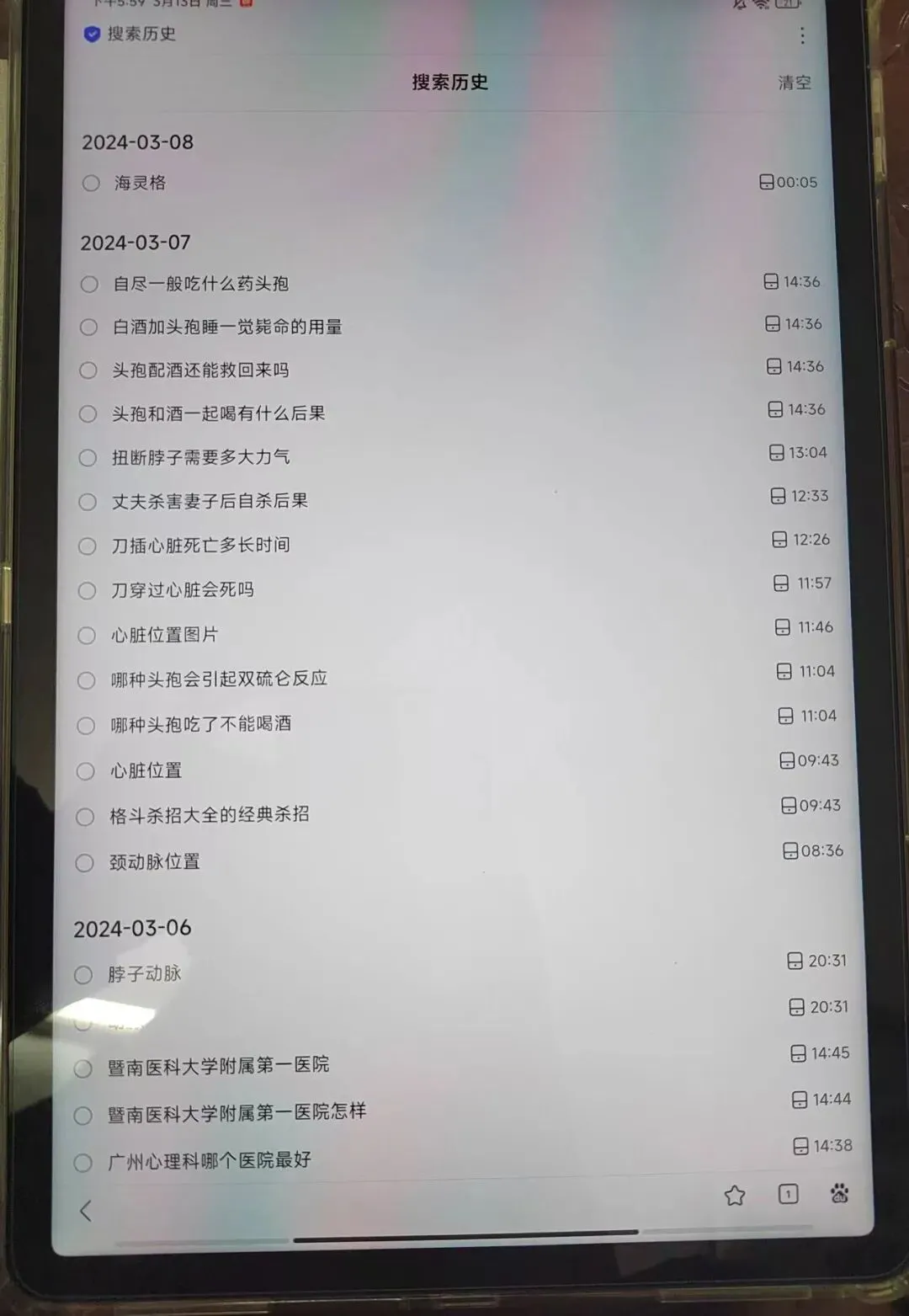 案发前杨某东的浏览器搜索记录(受访者提供)
