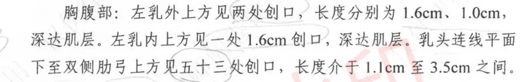 被害人尸检报告显示,胸腹部刺穿伤53处(受访者提供)