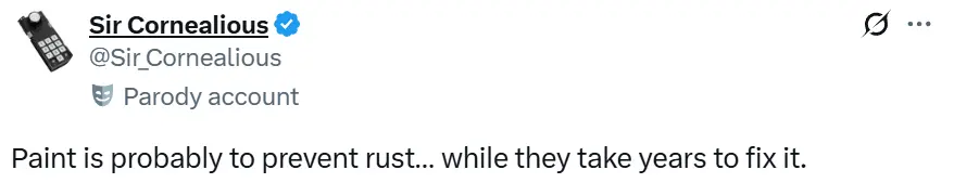 “涂漆大概是为了防锈……而修复却需要花费数年时间。” ↓