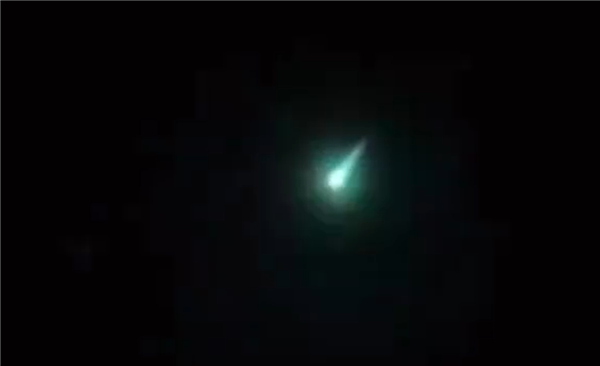 视频显示,这颗小行星拖着蓝色焰尾划过大气层,随后化身照明弹一般,发出白色的光芒,不多时周围重新陷入了黑暗中。