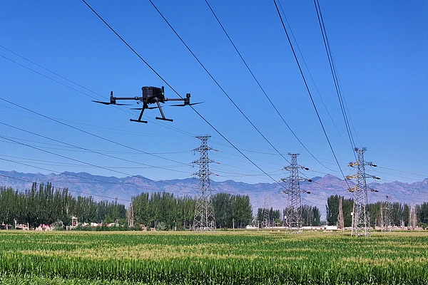7月21日,国网银川供电公司员工指挥无人机对金凤220千伏变电站周边关键输电线路展开密集巡视与精确红外测温。视觉中国
