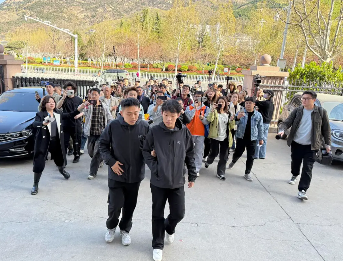 ▲第一次开庭时姜甲儒和哥哥走进法院