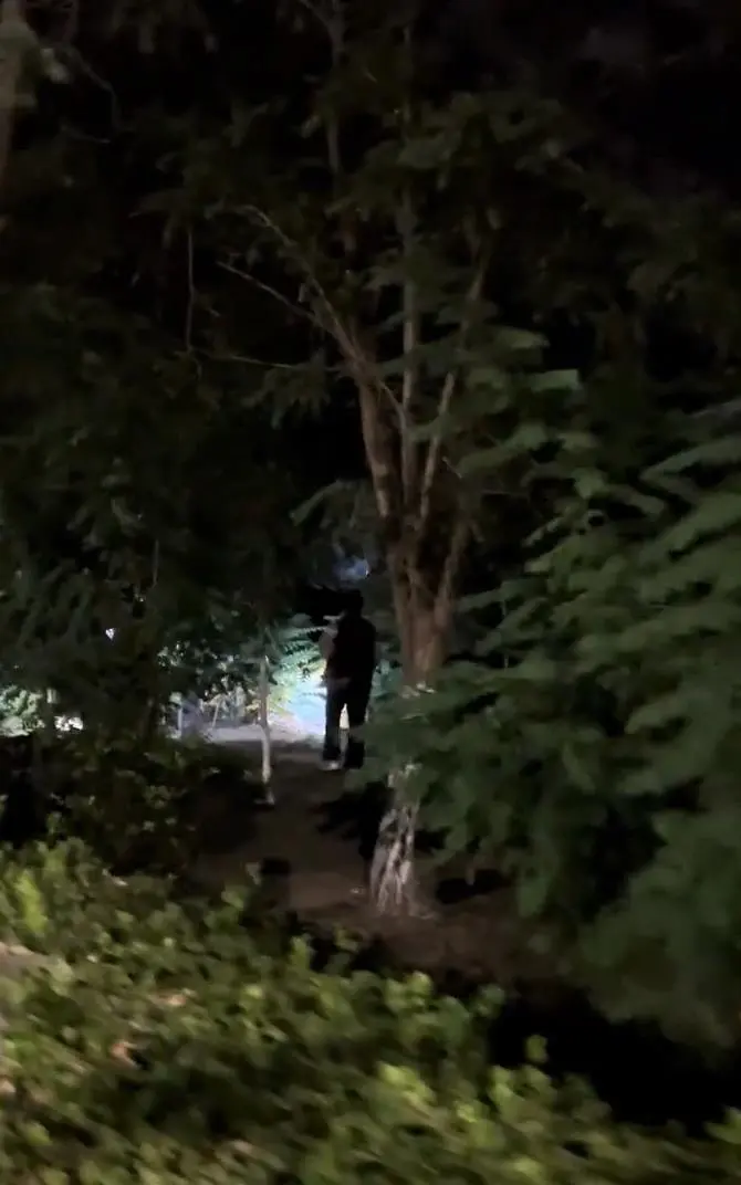 树丛中捡螃蟹的人(视频截图)