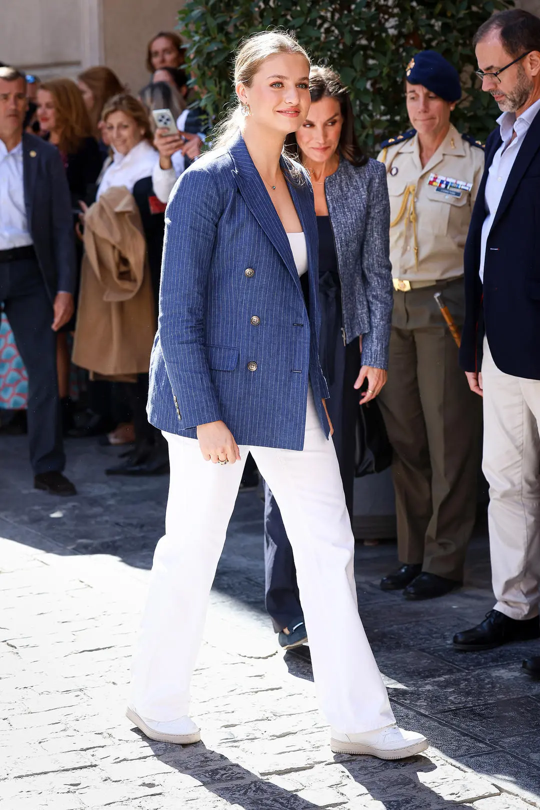 当地时间9月26日,西班牙公主莱昂诺尔随父母一起造访纳瓦拉地区。她身着蓝色西装外套,吸引了时尚专家的注意。西班牙民众也惊讶地发现,经过两年多的军事训练,莱昂诺尔与16岁时给人留下的青涩印象已经大不相同,她在与民众互动时也显得更为游刃有余。