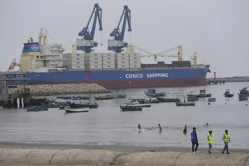 当地时间2024年11月12日,秘鲁钱凯港停靠着一艘货船 视觉中国