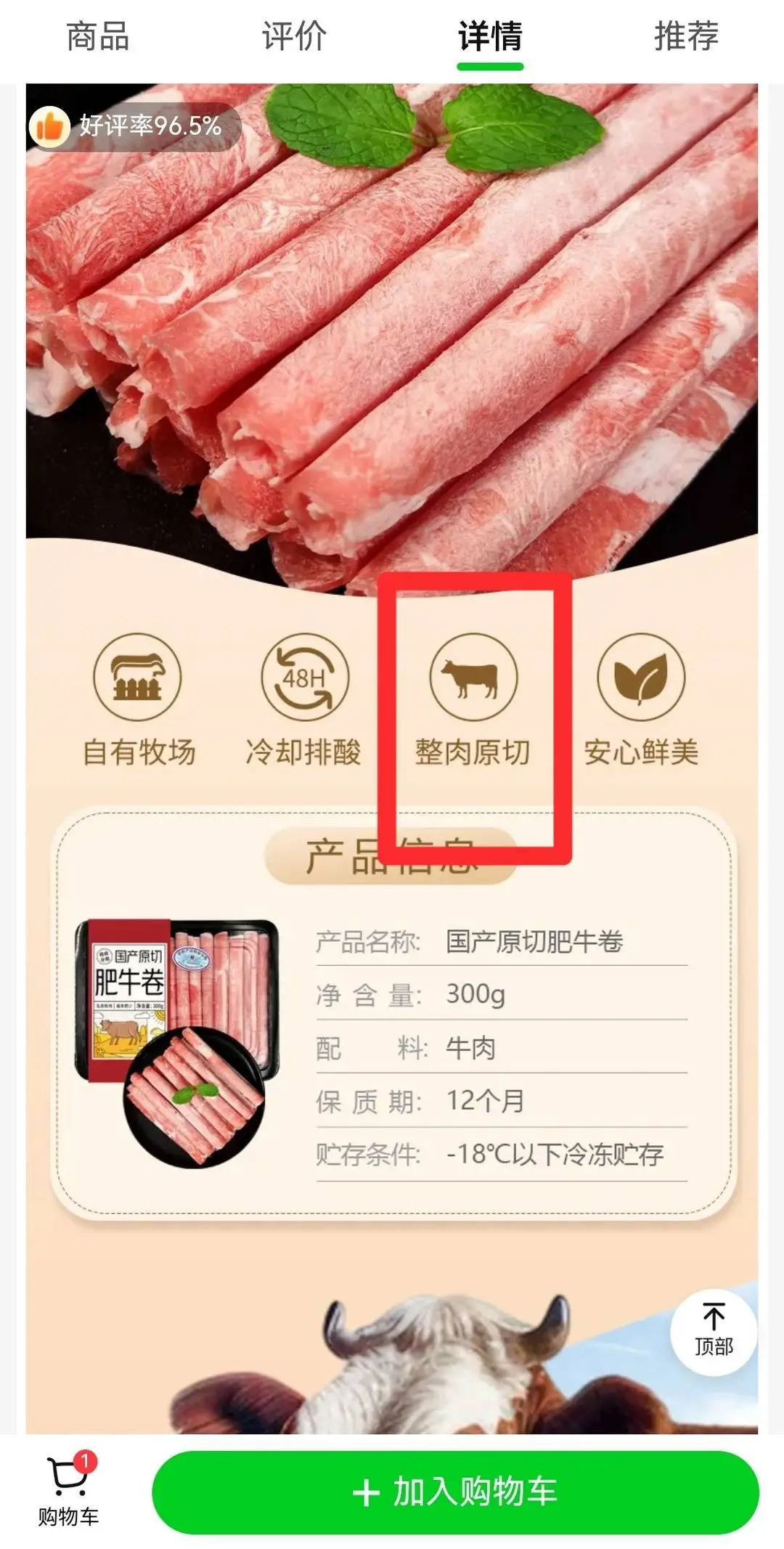 牛肉卷在小象超市页面的宣传信息(平台截图)