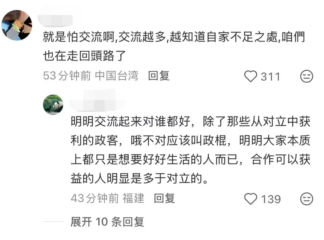 有台湾网友说,台当局就是怕交流,交流越多,越知道自家不足之处。