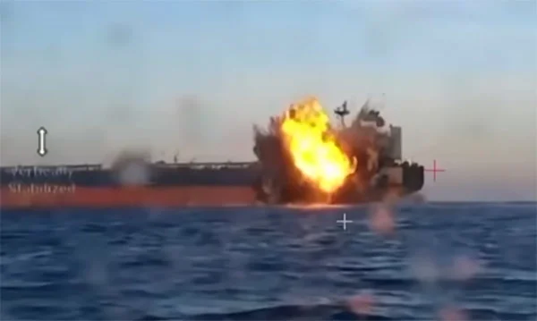 乌克兰国家安全局发布的在黑海袭击油轮的画面 视频截图
