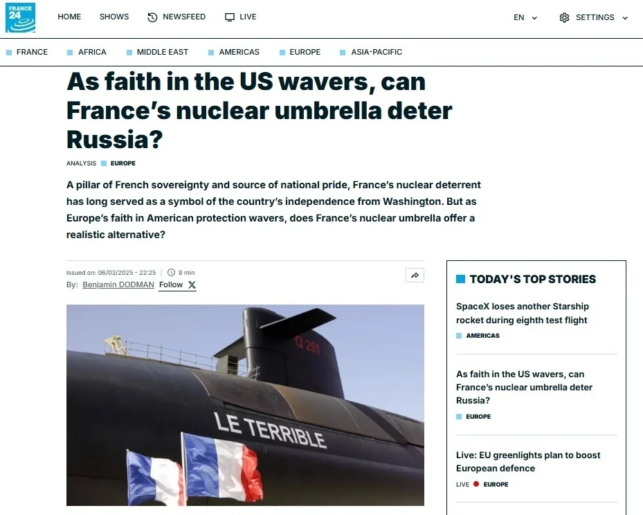 法国总统马克龙3月5日宣布就法国向欧洲盟国提供“核保护伞”的问题展开战略讨论之后,欧美媒体对此也开始了“讨论”。