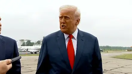 当地时间8日,特朗普在停机坪上回答记者提问。图源:美媒视频截图