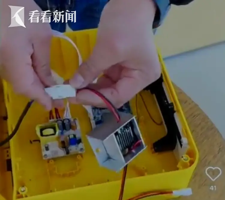 打开这些电瓶车的座椅,可以看到这些充电宝柜机,取电方式都很野生,有的是剥开电线粗暴绞接逆变器,网上甚至还有教程,出售加装了一些“手搓”的电压转换模块成品,来实现电瓶车改装充电,隐患可想而知。