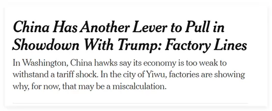 其中,《纽约时报》记者艾莎(Alexandra Stevenson)专门来到在不少美国媒体人以及学者看来,可以直观感受中国贸易情况好坏的浙江义乌。而义乌仍然火爆的外贸交易,包括当地贸易商对她讲述的情况,让这位美国记者很快意识到,中国强大的制造业,以及为了应对地缘政治风险而不断多元化的海外市场,是中国底气的一大由来。