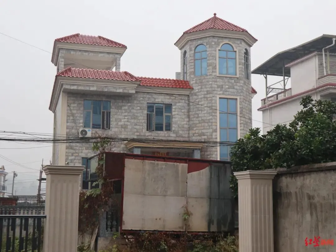 当地人介绍,洞口人有“四会”,其中包括“会建房子”——很多农村人愿意耗费财力在老家修建高大气派的房子。尹某健的房子是一座带有院子的独栋别墅,设计独特、外观别致,进院子后入户门前还建有阶梯,比周边邻居的房子更为气派。