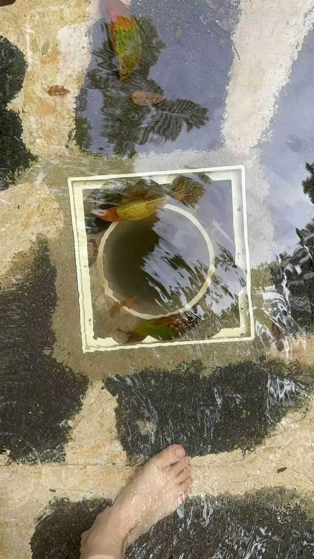 经测量,回水管直径27厘米,深95厘米,成人腿能陷至大腿根部。