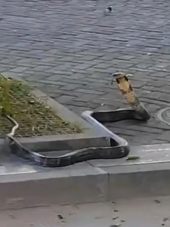 当地的一位居民向红星新闻记者介绍,这条眼镜王蛇是在当地三合小区附近的街道上被发现的。“当时它就趴在路边一动不动,看着体型不小,估计有两三米长。过了一会儿,蛇头还竖了起来,四处张望,看着特别吓人。以前从来没见过眼镜王蛇,大家都慌了神,赶紧给消防部门打电话,最后是消防人员过来把蛇抓走了。”