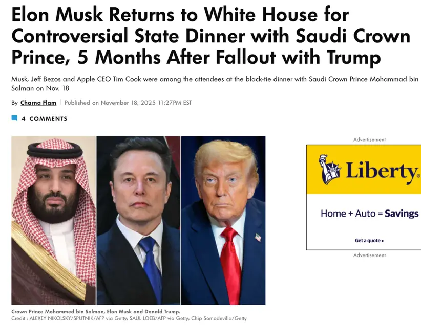 从这一角度看,11月18日的白宫晚宴,更像是一个新阶段的起点:马斯克不再是当年那个只谈环保、谈太空梦的创业英雄,而是一个手握巨量算力需求、主导多条产业链、能左右部分舆论的“AI时代大玩家”。这场晚宴并不能回答所有问题,却已清楚传递了一件事——在接下来围绕人工智能、芯片和中东算力布局的博弈中,他注定会一次次地出现在镜头正中。