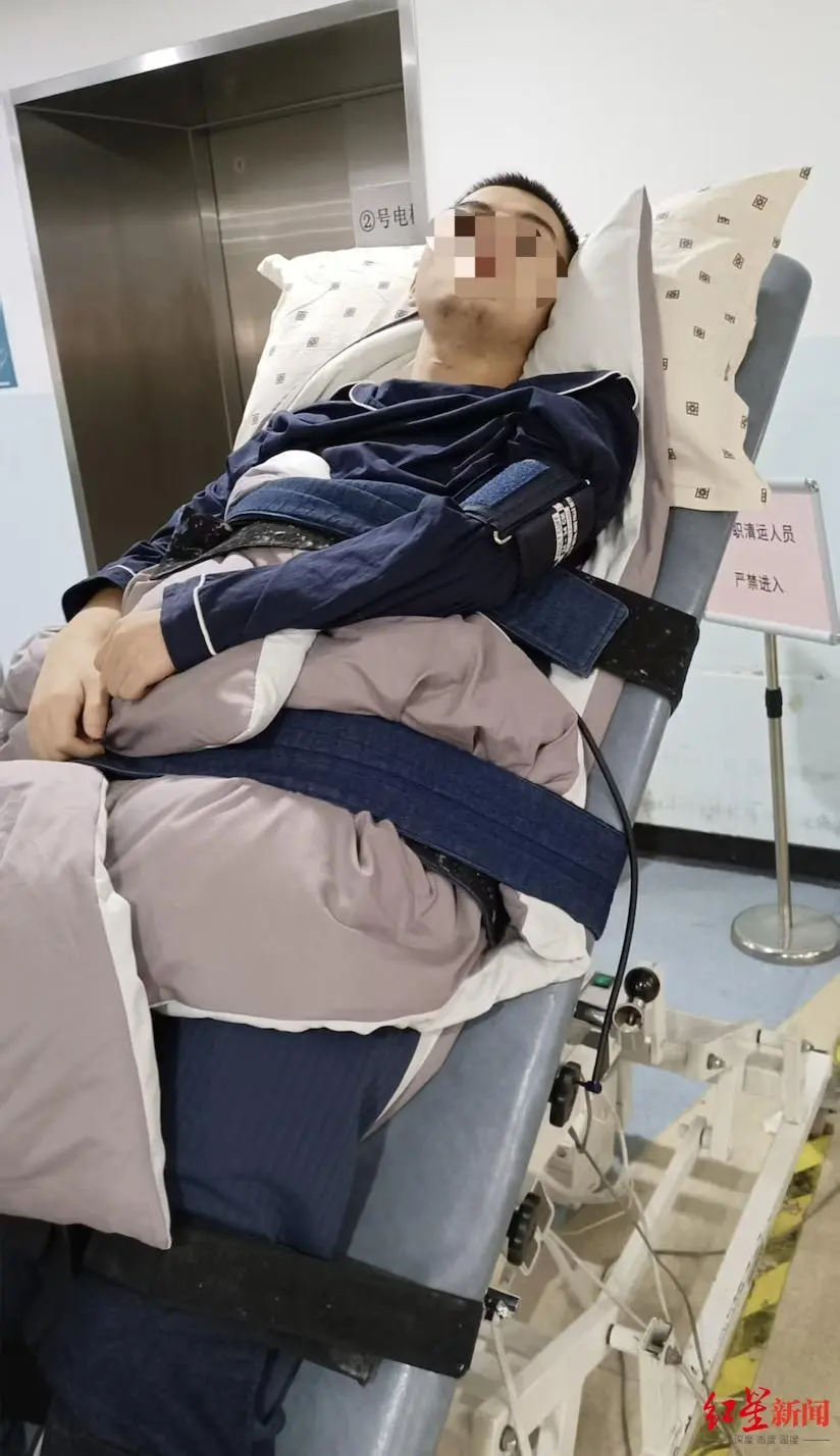 2023年10月19日~24日,王辉在上海长海医院做开刀治疗。病历显示,王辉椎体双侧多根骨折,除双上肢近端肌力3级、握力2级外,双下肢各肌块均为“0级”。