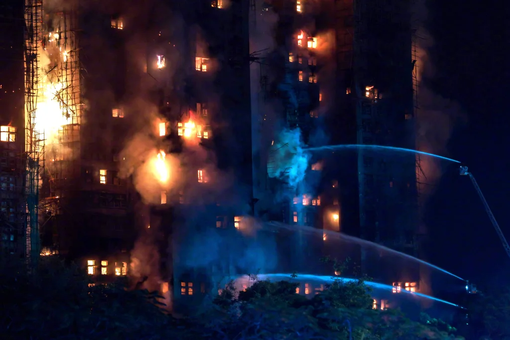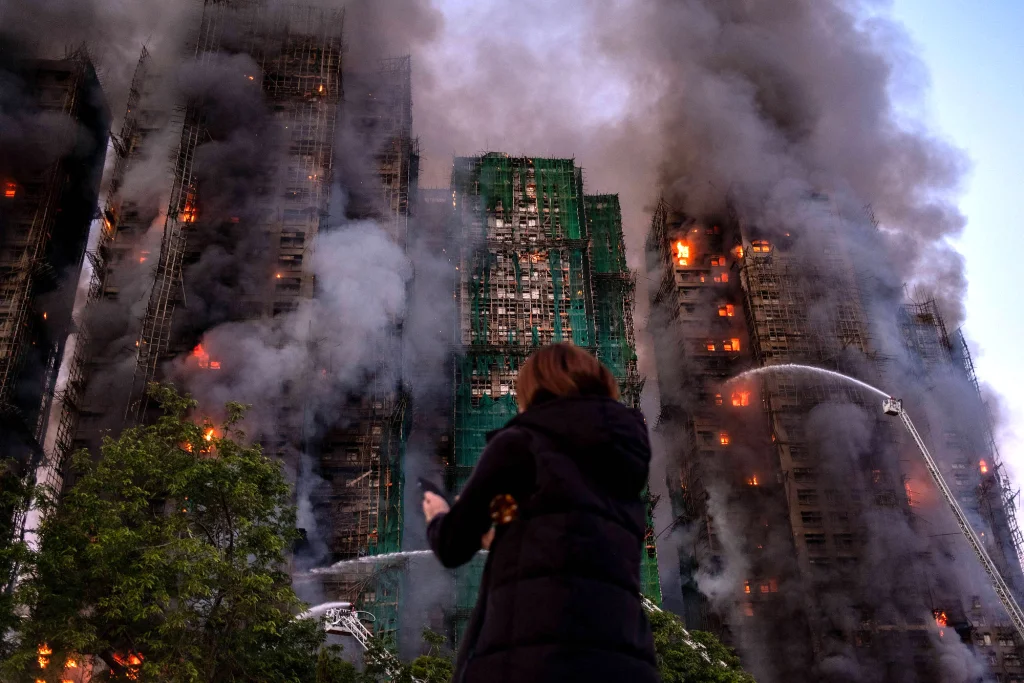11月26日,香港大埔,宏福苑多栋住宅楼发生严重火灾,浓烟滚滚,火焰冲天。