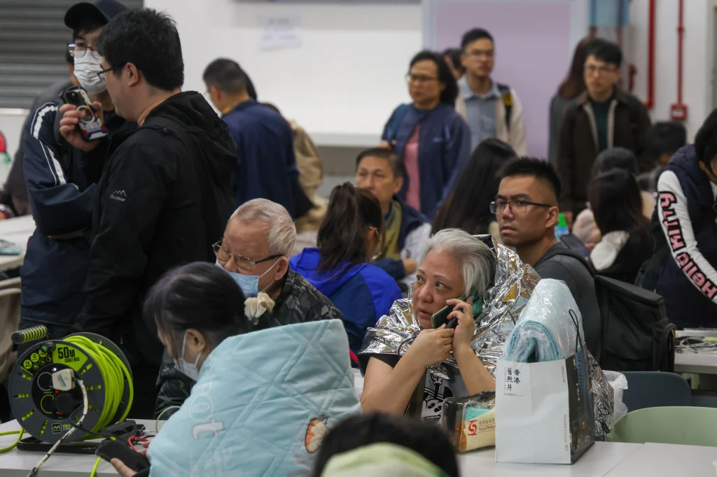 11月26日,香港大埔,宏福苑住宅区发生火灾后,居民在一个临时避难所避难。