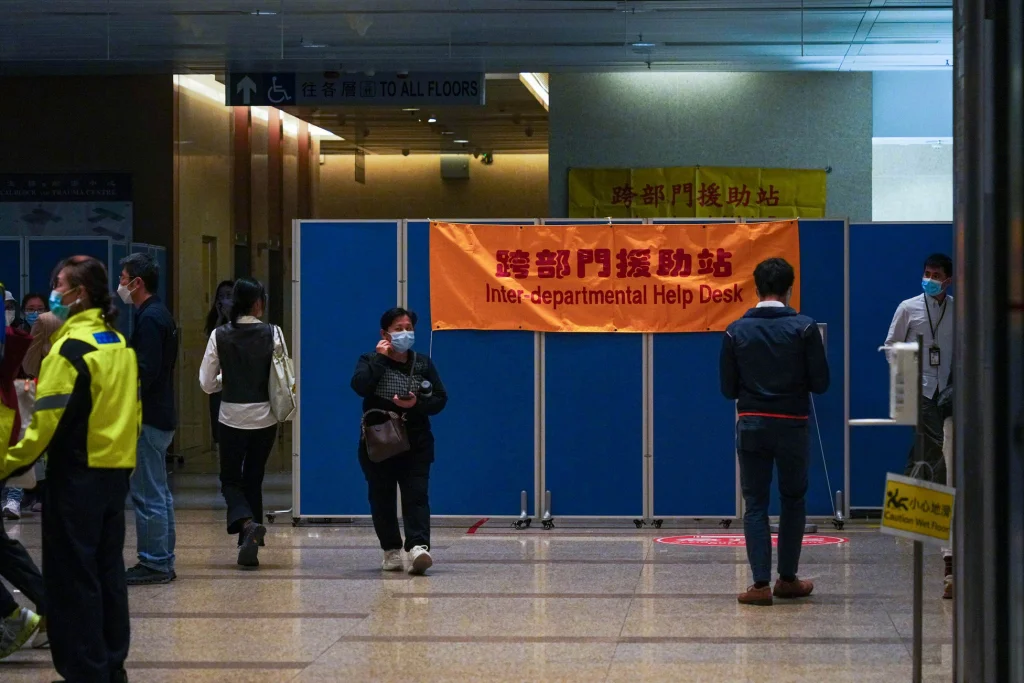 11月26日在香港威尔斯亲王医院拍摄的跨部门援助站。新华社记者 朱炜 摄