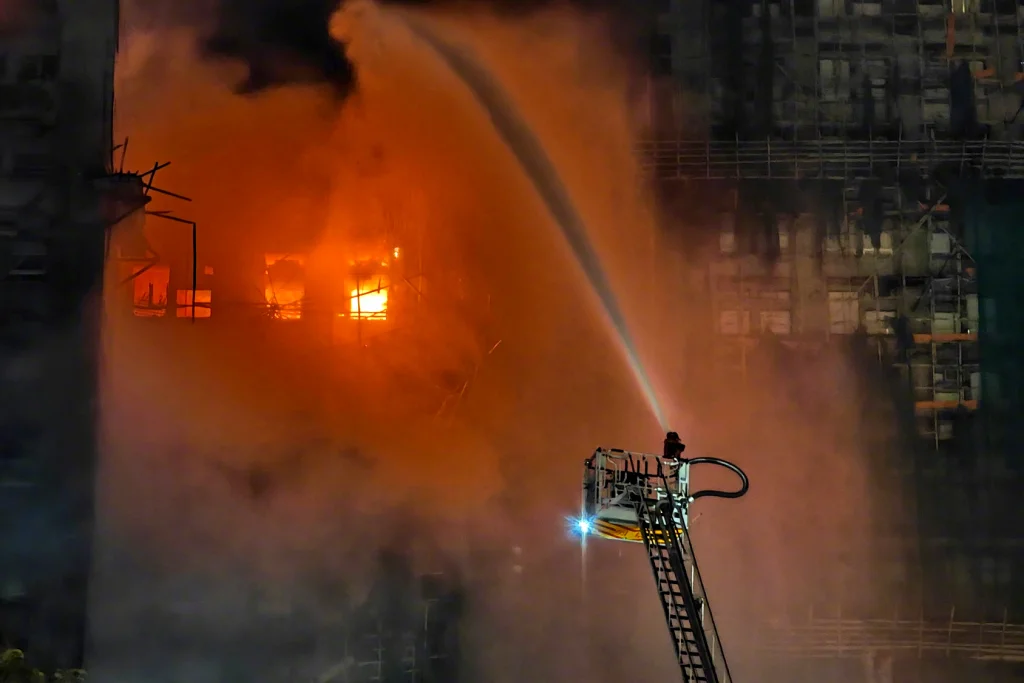 11月26日,香港大埔宏福苑爆发五级火情,大火经外墙棚架蔓延。