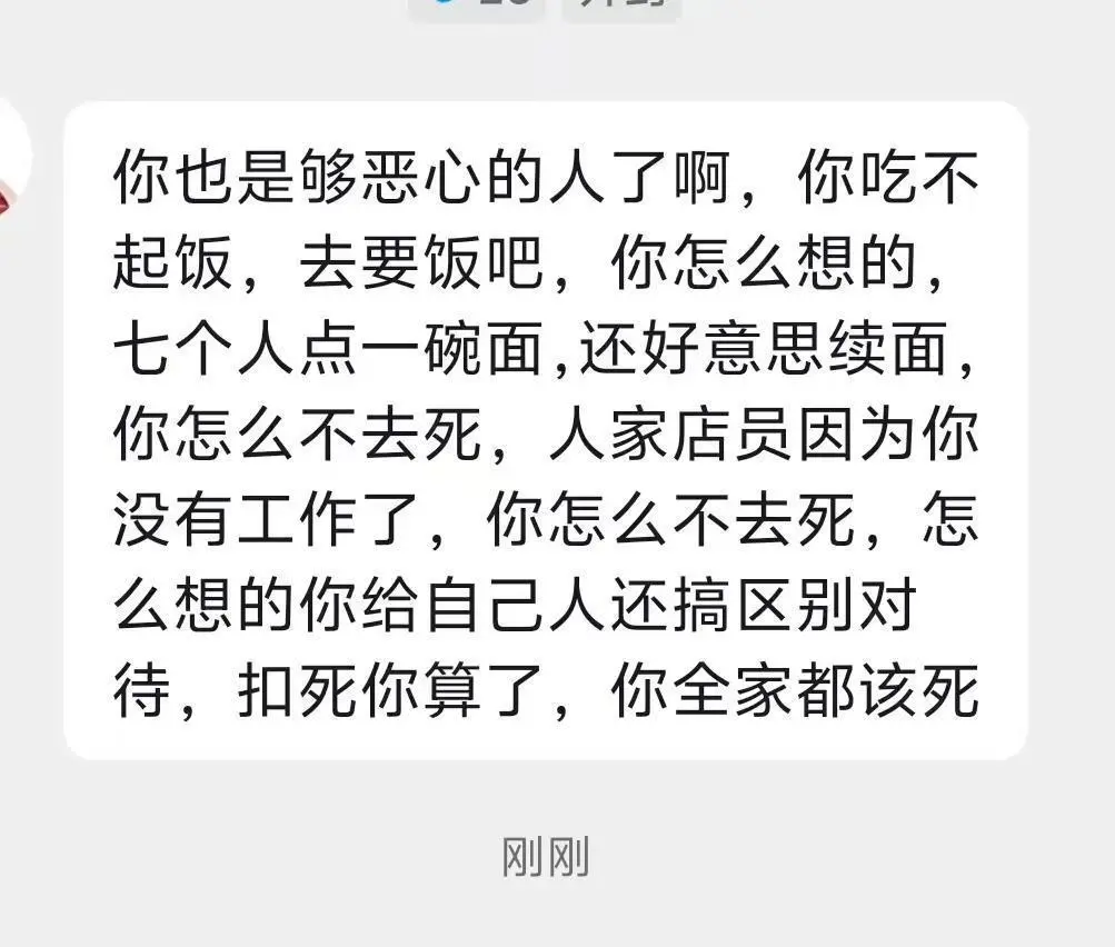 今年8月份,郑州一面馆老板因续面问题将马女士及其孩子的视频发布至网络。视频中,该老板发布的“只点了一碗面”“顾客消费70余元”等言论,引起轩然大波,导致顾客马女士及家人被网暴。之后,马女士晒出140余元的账单还击,舆论纷纷倒戈,老板账号被封禁,面馆被迫关停。此后,马女士持续遭遇网暴。