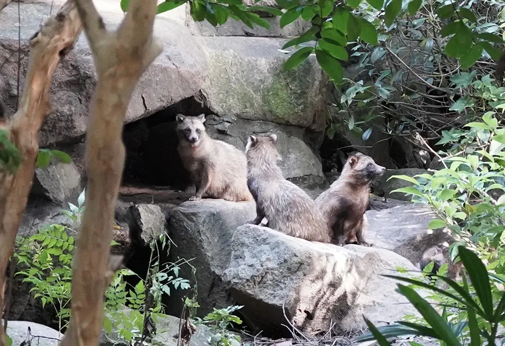 貉,上海原住民,面部戴着“黑眼罩”,与浣熊相似,身体和尾巴的毛发为棕灰色,毛尖黑色。它属于国家二级重点保护野生动物。
