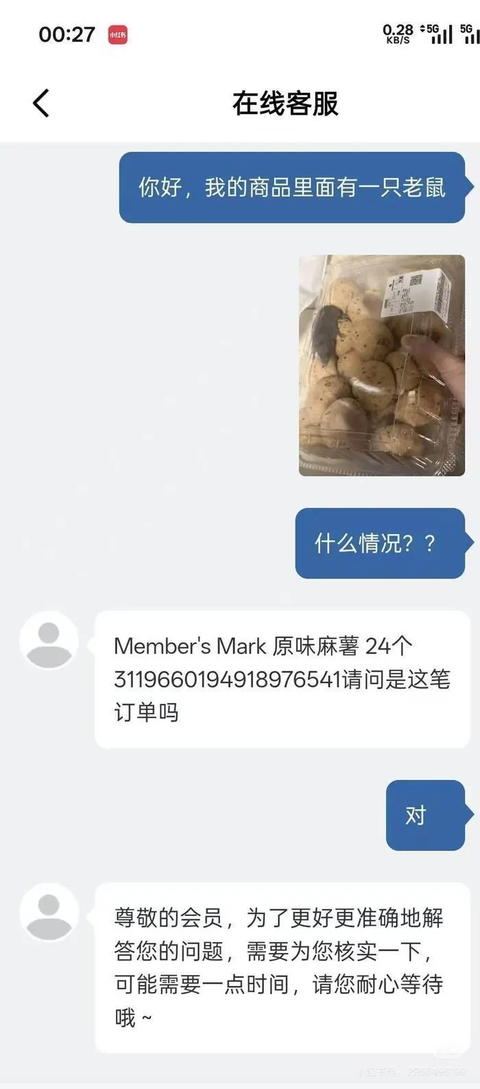 据新黄河客户端稍早前报道,9日凌晨,深圳一名消费者晒出其日常订单,12月8日晚通过山姆App的“极速达”服务,购买了包括鲜奶、橙汁及一盒24枚装Member's Mark原味麻薯在内的商品。但当晚送达的银色保温袋中,除了冷链商品,还出现了一只老鼠。