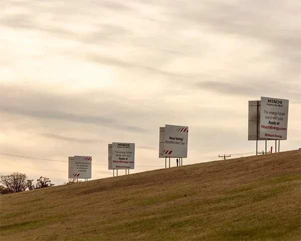 日立能源南波士顿工厂外的公路两旁竖立着招聘告示 《华尔街日报》