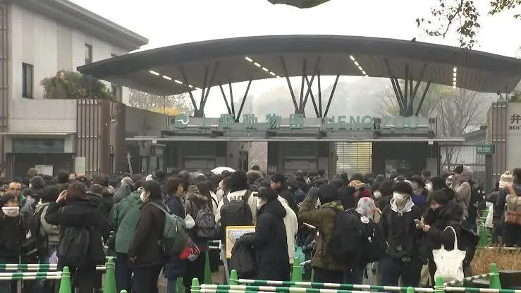 据报道,鉴于该动物园周一休园,21日是不需要提前预约的最后一天,大批日本民众当天一早排起长龙,希望能见到“晓晓”和“蕾蕾”。