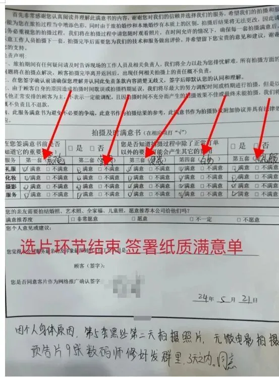 “部分消费者为达到目的,随意发帖避雷,倒逼商家退款。这些不实帖子严重违背契约精神,损害了企业的合法权益。”于涛表示,企业曾多次向小红书平台提交消费者签字“确认满意”的记录、聊天截图等证据,申请删除不实避雷帖,但均被平台以“证据不足”为由驳回,导致当地旅拍、婚拍企业普遍遭遇此类损失。