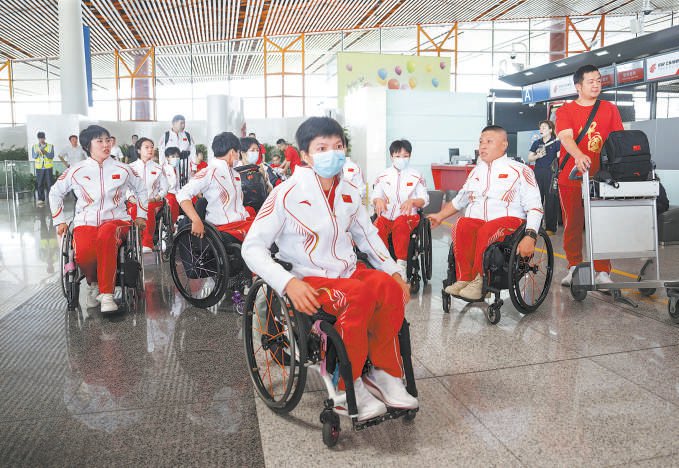 本报讯(实习记者李婷婷)当地时间21日,巴黎残奥会中国体育代表团抵达法国巴黎戴高乐机场。本届残奥会将于8月28日至9月8日在法国举行,共设22个大项、549个小项,届时将有来自约160个国家和地区的4400名运动员参赛。中国体育代表团将参加射箭、田径、羽毛球等19个大项、302个小项的角逐。