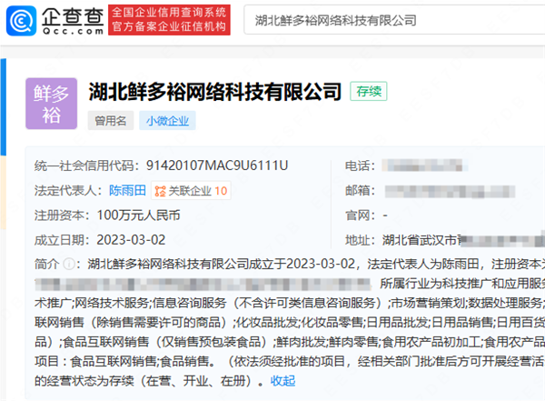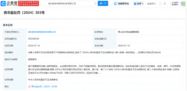 9月9日消息,据媒体报道,王海发视频称,疯狂小杨哥带货的“鲜多裕”假原切牛肉卷已被罚款50万,有4.2万名消费者被骗,退一赔十需要赔偿4200万给消费者。 企查查APP显示,涉事公司湖北鲜多裕网络科技有限公司成立于2023年3月,注册资本是100万元,今年7月青山区市场监督管理局对其作出罚款50万元的处罚。